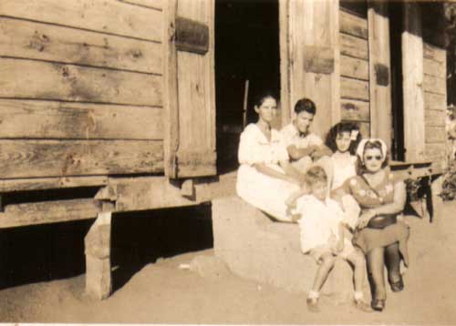 Doña Gregoria (Goyita) Santana, Noel Ocasio, Lydia Delgado, Mangie y Teti. Nótese la casa montada en "socos".