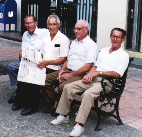 Juan (el Nene) Ocasio, Edsel Igartúa, Rubén Ubiñas y Gelo Hernández en el Paseo Linares.