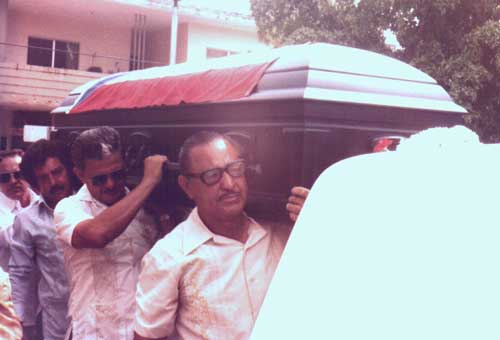 Entierro de Don Moncho Chaves de primer plano hacia el fondo: Don Miguel Pérez, Juan Luis Pérez, Gudo Hernádez y Monchito (hijo de Don Moncho Chaves)