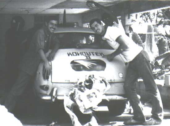 Juanjo y Yo el día que le pintamos el volky a Papo Vives. Kohoutek II